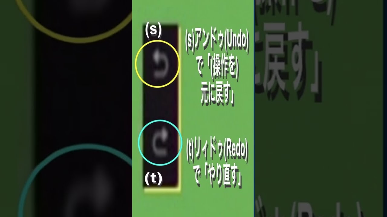 左はしのタテに並んだ3つのアイコン群③の下にあるアイコン群④は(s)上が「アンドゥ(Undo)」で「(操作を)元に戻す」(t)下が「リィドゥ(Redo)」で「やり直す」 で、 何かを操作したあと修正などをする時のためのものです。